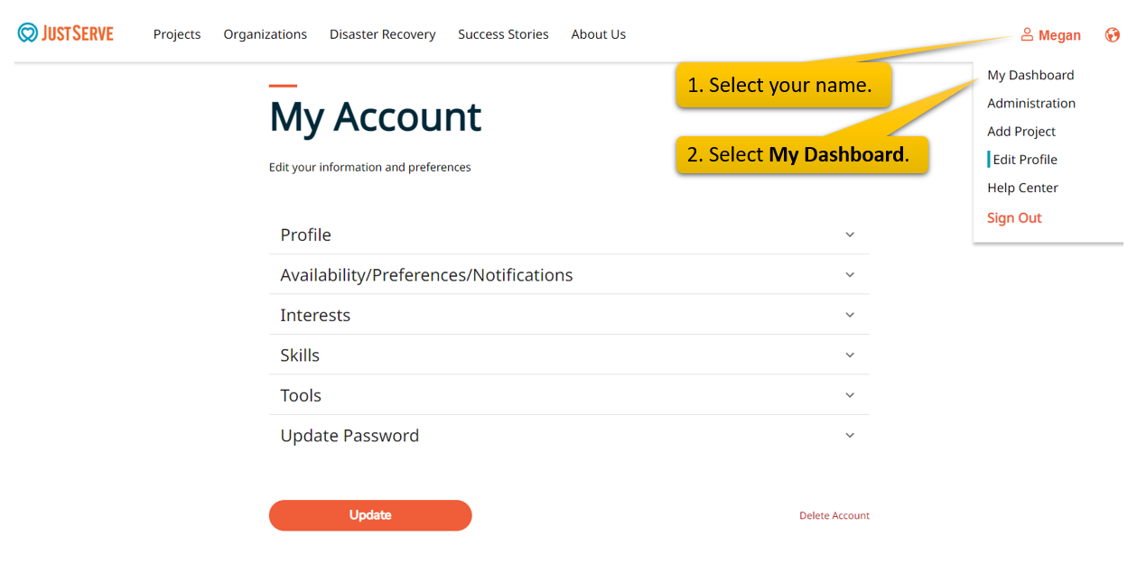 Finding favorited projects on the website JustServe Help Center June 02, 2023 20:08 Updated See three steps below: Related articles Using My Dashboard Service Project Ideas How to Volunteer for a Project Manage System Notifications Start a JustServe Club! Comments 0 comments Article is closed for comments.